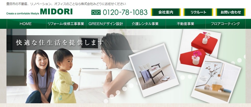 株式会社みどりはリフォーム・リノベーションの提案や不動産、ノンメンテナンスでお掃除らくらくのフロアコーティングまで手掛ける会社です。