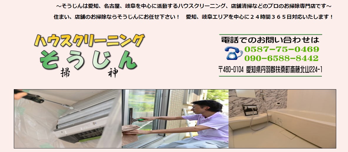 ハウスクリーニングそうじんは愛知県岐阜県を中心の地域密着型の会社でハウスクリーニングを中心にフロアコーティングも行う会社です。