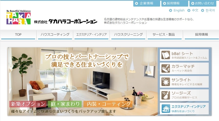 株式会社タカハラコーポレーションは水廻り、和室の白木、フローリングまでコーティングを行うプロのフロアコーティング業者です。