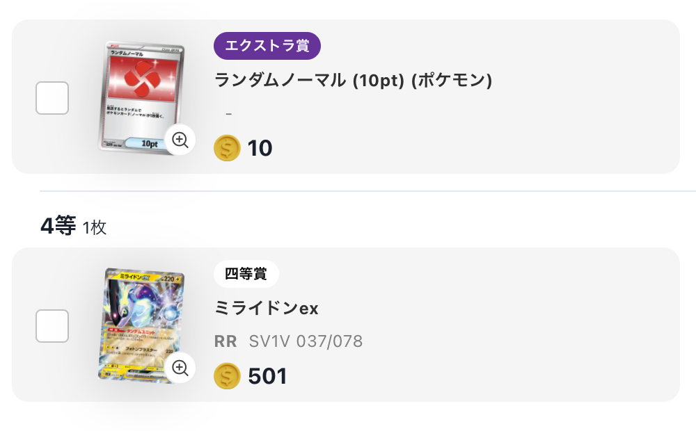 次は、499ptで挑戦できる「ログインボーナスBOXオリパβ.Vol3」に挑戦。