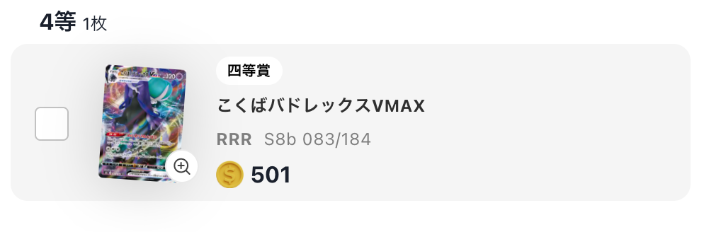 「1日1回限定オリパ」500pt ⇒ 「510ポイント変換カード」が当たりました!