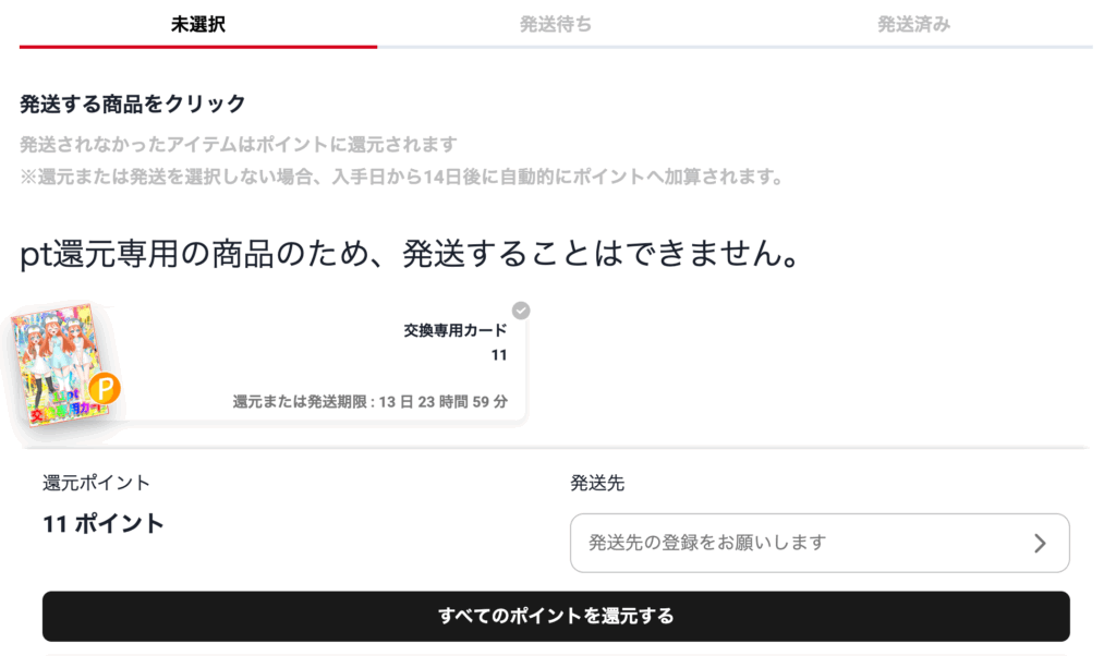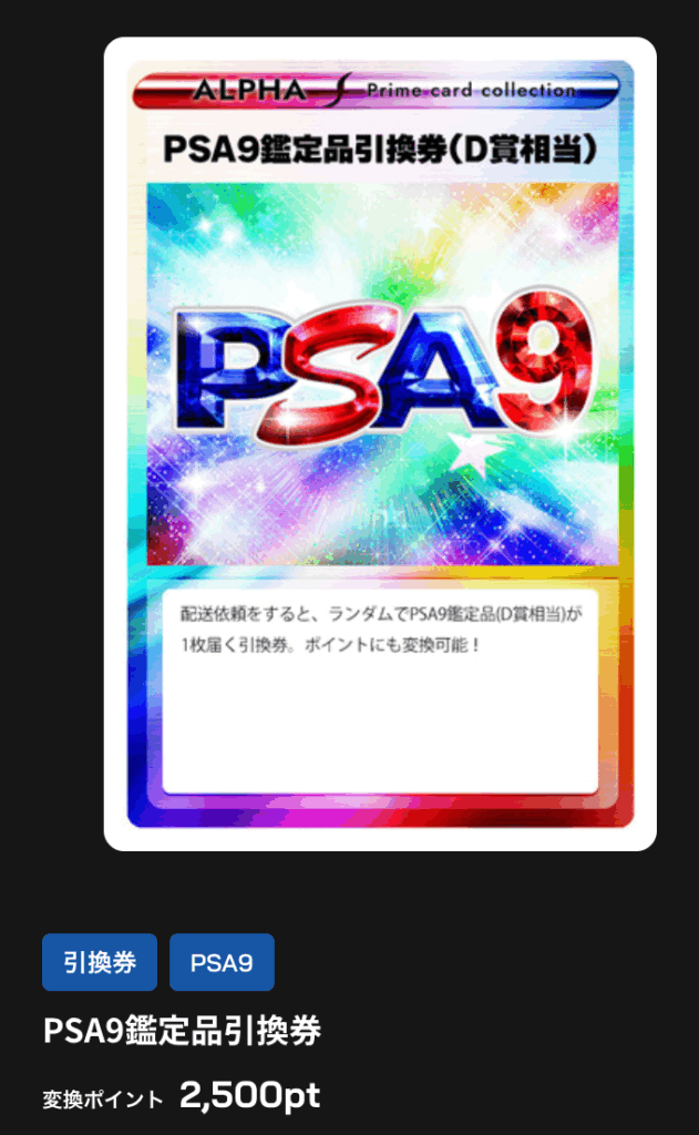 PSA9はいらないのでポイントに変換しました。また、コツコツログボで6000ptためますかね・・。
