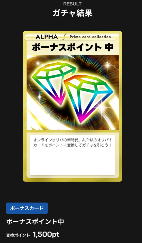 Card Shop ALPHA(アルファ)は、1000円のログボでボーナスポイント中(1,500pt)が当たりました!